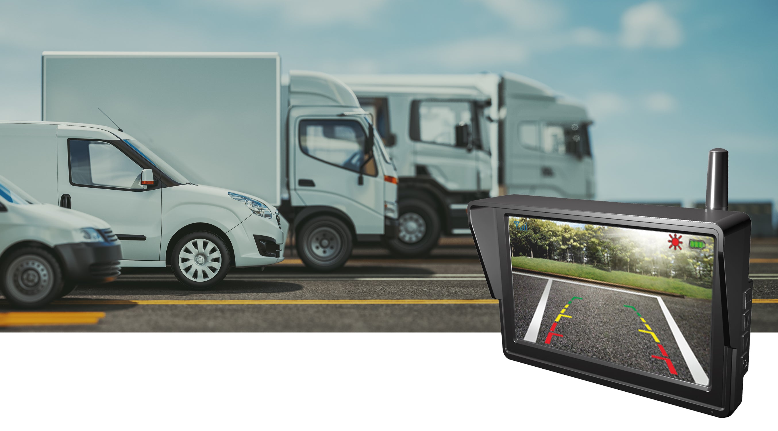 Reverse camera RC-400WS – Solar-powered camera with ultrasonic sensors & 5-inch monitor