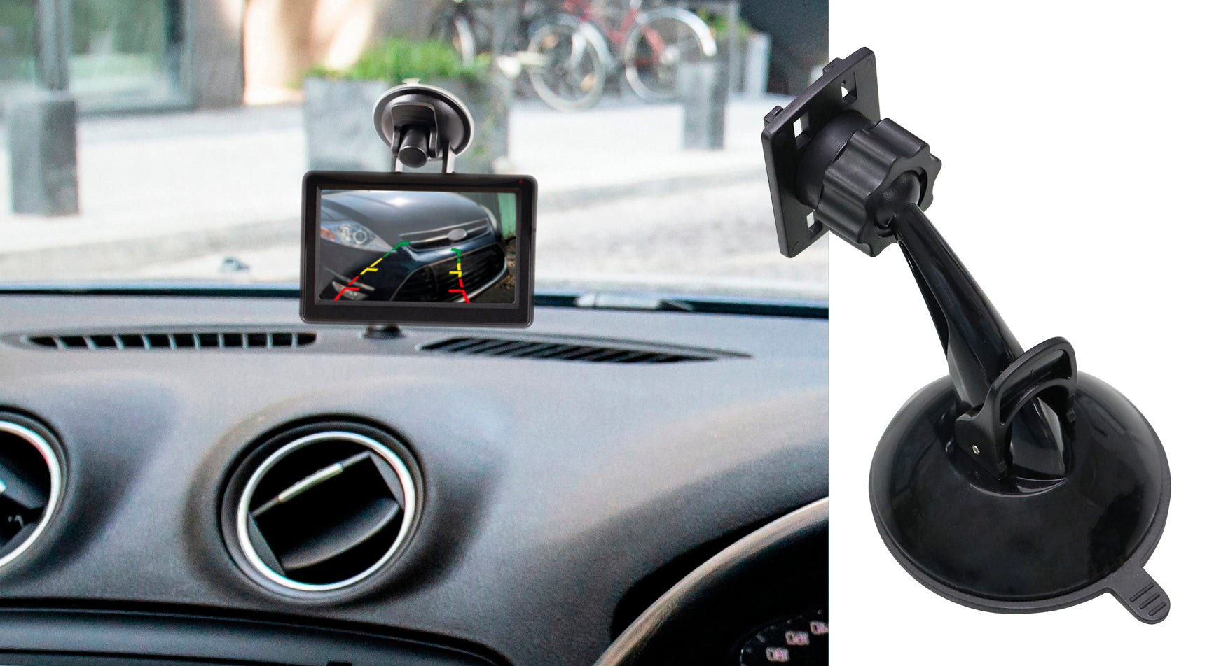 The installation of the RC-400WS could not be easier: For the installation of the License plate holder and of the Monitors You do not need to drill or splice. - attach Simply attach the license plate holder with the included mounting materials outside of your vehicle and install the monitor inside with the practical suction cup holder anSo you save time and effort and avoid damage to your vehicle.