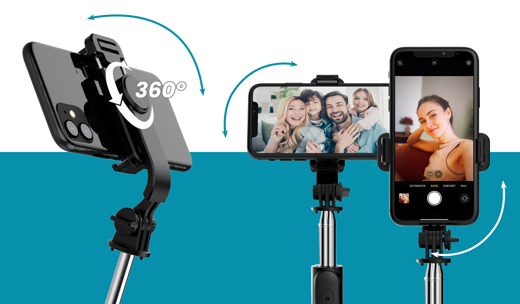 Many applications: As a tripod or as a selfie stick with up to 103 centimeters