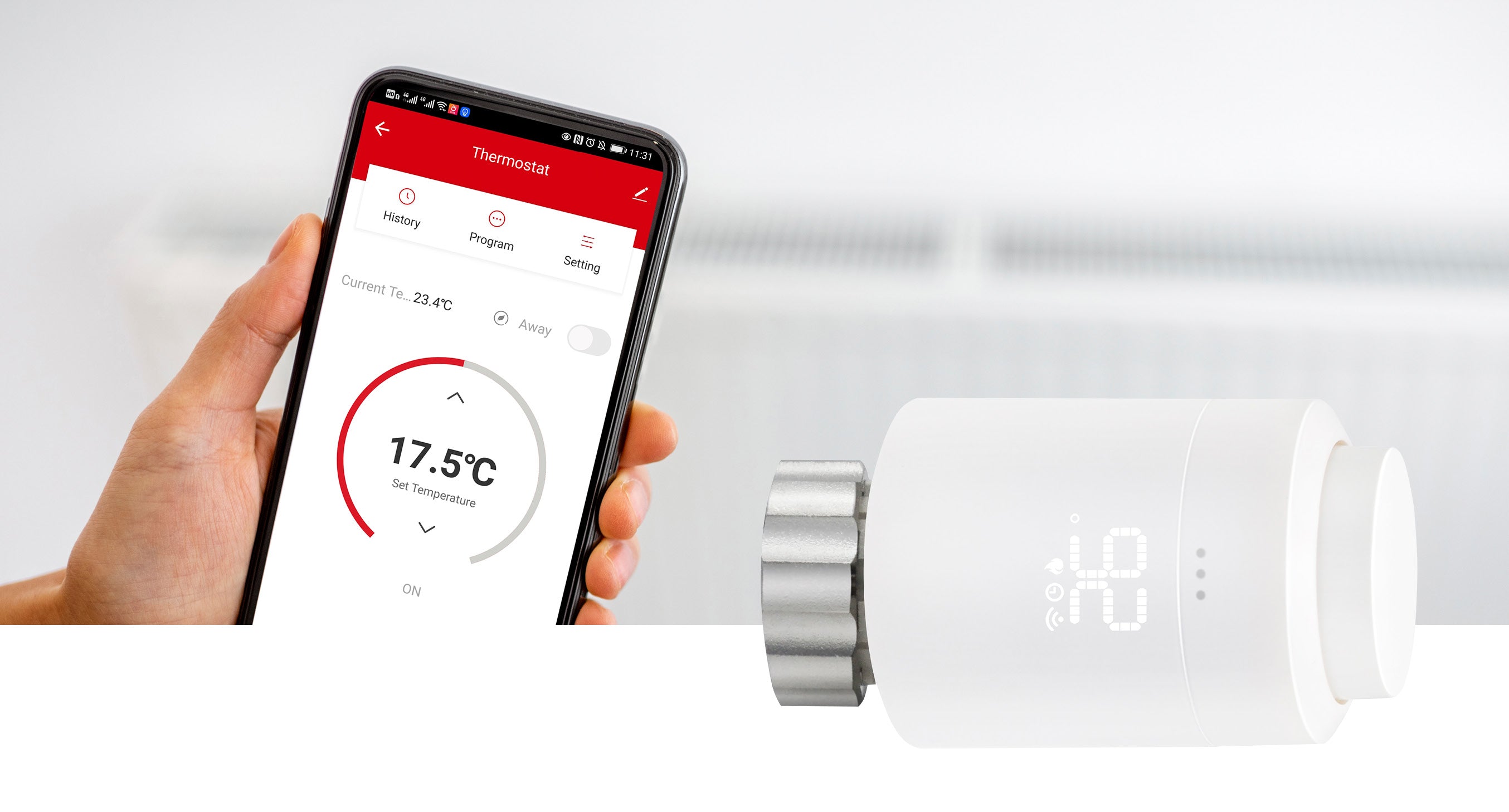 With the smart thermostat, you get a wealth of features, such as individual heating cycles to adapt to your daily routine, Window Open Detection to save energy while ventilating, Away Mode to save energy during your absence, Frost protection mode, Limescale Protection Mode and Child Safety Mode to protect against unwanted adjustment. And if desired, you can also easily set the current temperature manually just like with a regular thermostat via the Turning the knob einstellen. These diverse functions offer the highest level of flexibility and control over your heating system.